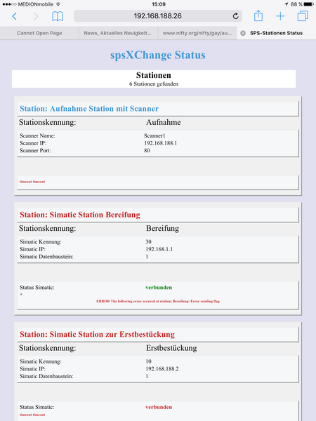 Die Monitoring oder Überwachung der Stationen kann für Simatic und Scanner auch von mobilen Endgeräten durchgeführt werden. Voraussetzung ist, dass das Gerät zugriff auf das jeweilige Netwerk hat.